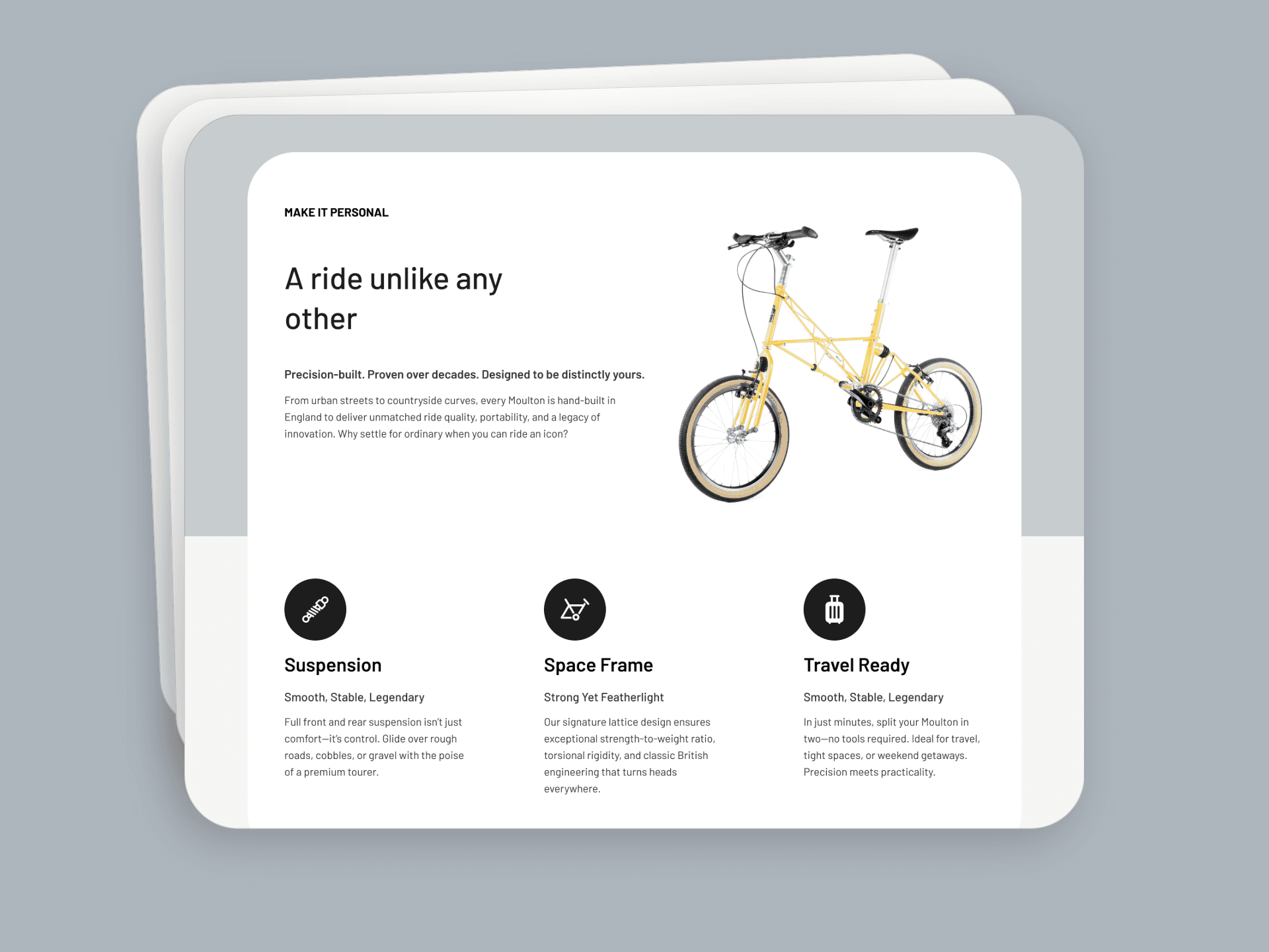Alex Moulton is known for their handcrafted small-wheel bicycles. The brand has a rich legacy, but their digital presence needed a more modern and product-focused experience.