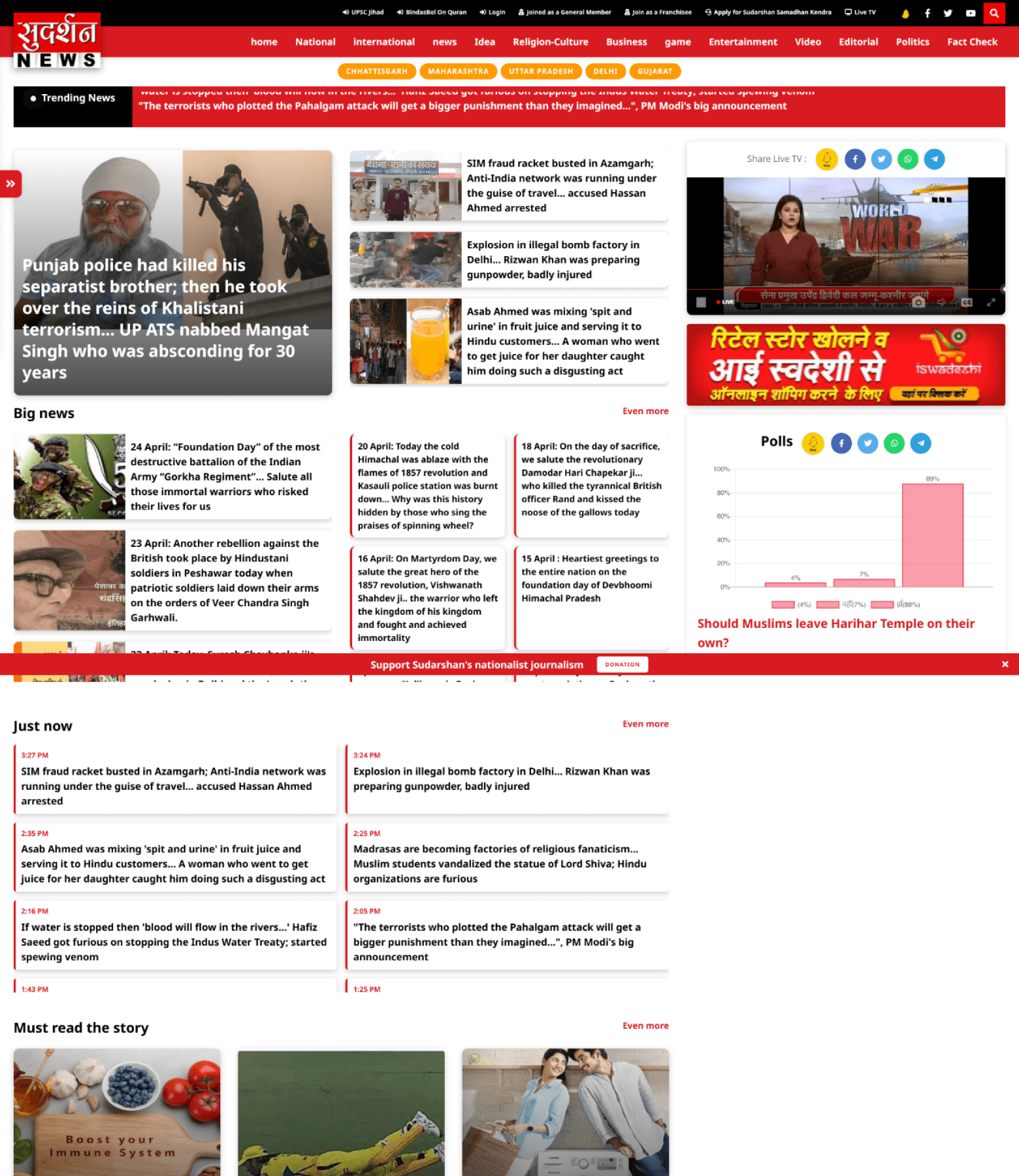 The original site (https://www.sudarshannews.in) presented a number of usability challenges: