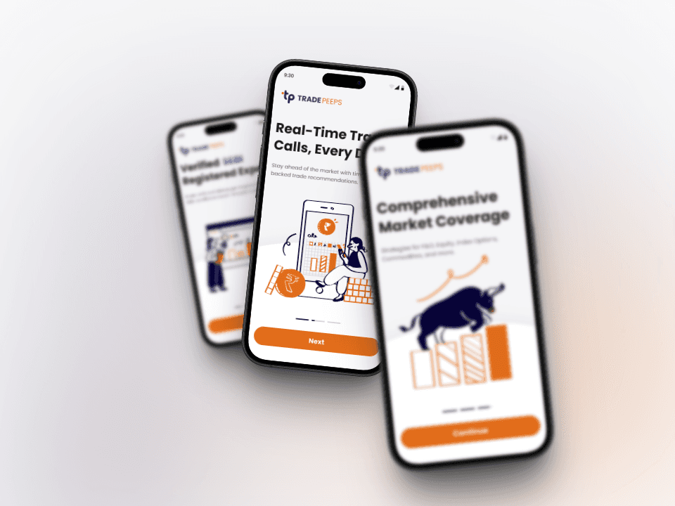 Retail traders in India often find it hard to trust the trading calls they receive, navigate cluttered dashboards, and interpret scattered financial advice. TradePeeps was envisioned as a solution that connects users with SEBI-registered experts, providing real-time trade calls, synced portfolios, and performance dashboards all within a mobile-first app.
