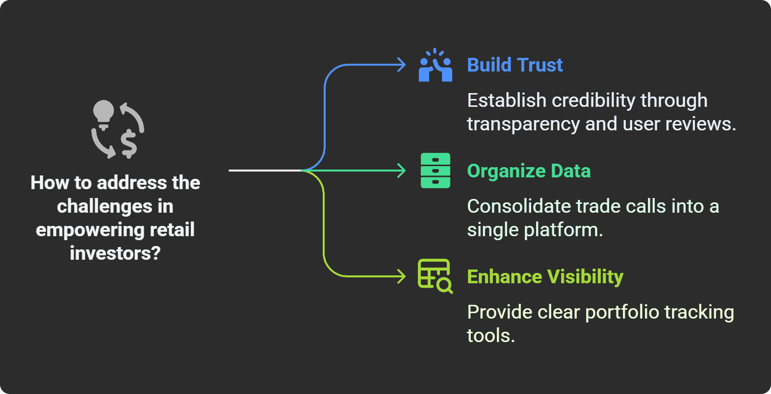 The project set out to empower retail investors by solving three major pain points: